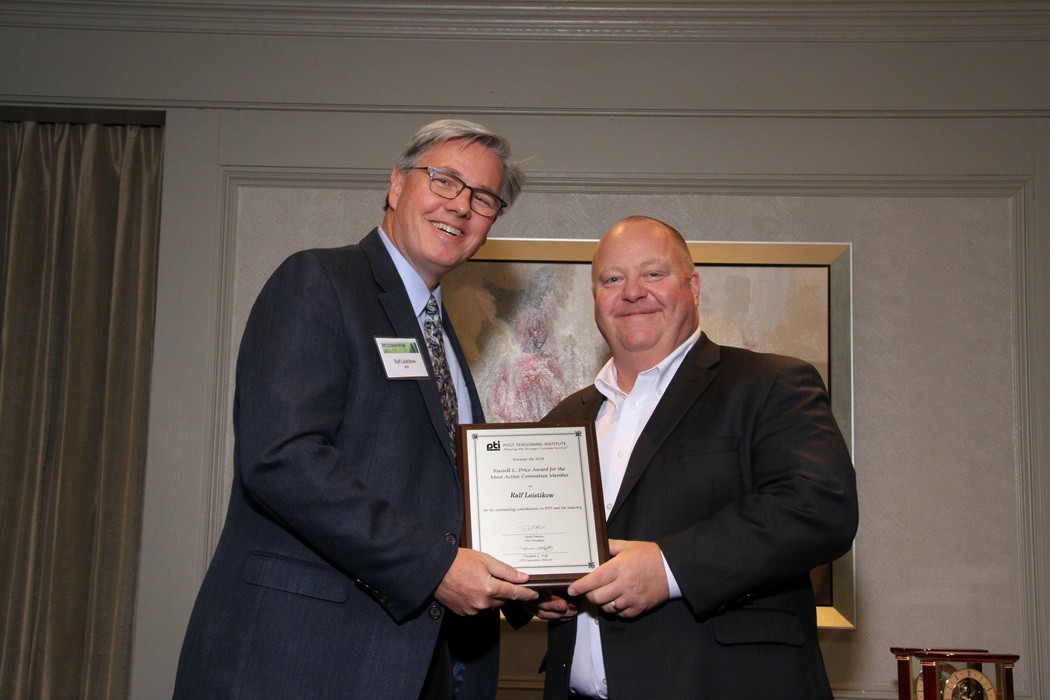 WJE Principal Ralf Leistikow recently received the Kenneth B. Bondy Award for the Most Meritorious Technical Paper for “Stressing the Quality of Unbonded Post-Tensioned Single-Strand System Installations,” published in the December 2017 issue of the PTI Journal. The Kenneth B. Bondy Award is given annually in recognition of a significant impact of a published paper in the PTI Journal or a paper presented at the PTI Convention. It rewards outstanding contributions to the post-tensioning industry and to PTI. Mr. Leistikow accepted the award at the PTI TAB Awards Ceremony that took place at the PTI Spring Convention in Minneapolis, Minnesota, on May 7.
