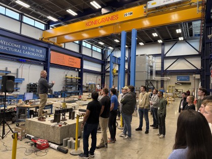We recently welcomed students and faculty from Purdue University College of Engineering’s “Failures and Forensics in Our Built Environment” class to tour our Janney Technical Center structural and materials science laboratories. Students participated in a variety of hands-on activities that culminated in a live structural load test of reinforcing steel.