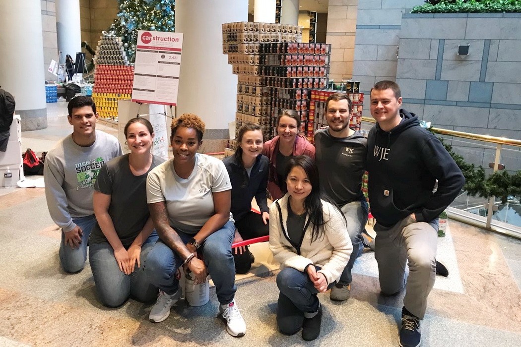 Staff from the Washington, D.C. office recently participated in CANstruction DC, a design and build competition benefiting the Capital Area Food Bank. This year's theme was the 1980s. The WJE team donated more than 2,500 cans to create their entry depicting the evolution of the cell phone's design.
