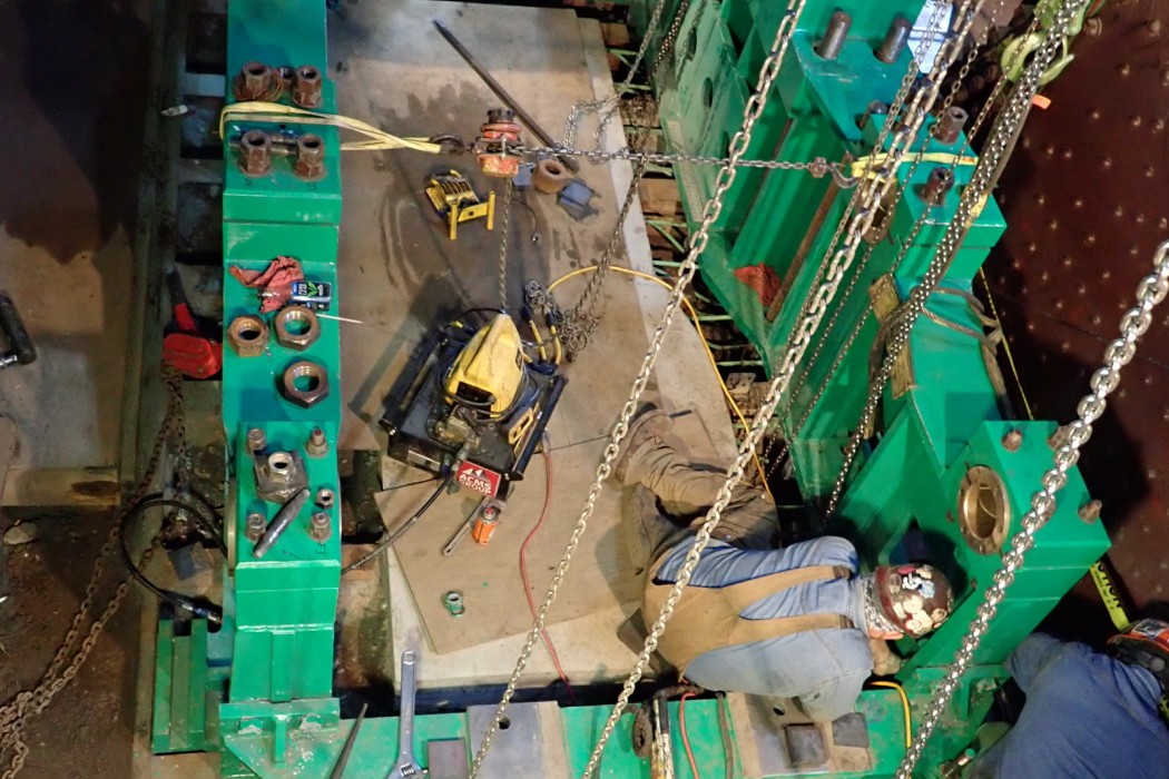 WJE identified significant misalignment of the northwest pinion drive shaft during the visual inspection and precision survey phase of the investigation. The existing location of the northwest machinery frame was found to be 1/2-inch forward of the ideal position. In addition, machinery frame distortion was identified along with severe rack tooth wear. Repair strategies were developed, and the “best value” option was selected by CDOT for implementation.