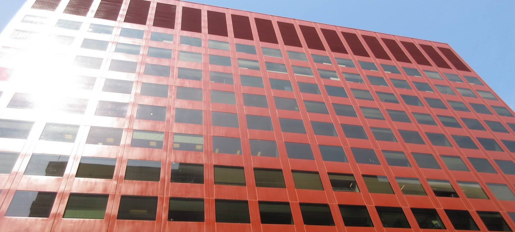 The client contacted WJE to assist with the recoating of the building exterior. The metal panels at the building were originally designed as a drained assembly that permit water to enter behind the cladding that is then managed through weeps and flashing to the exterior. The metal panels had been converted to a barrier assembly with the addition of exterior, preformed silicone bridge seals at the perimeter of all the metal panels. The seals were to be removed and replaced as part of the facade coating project.
