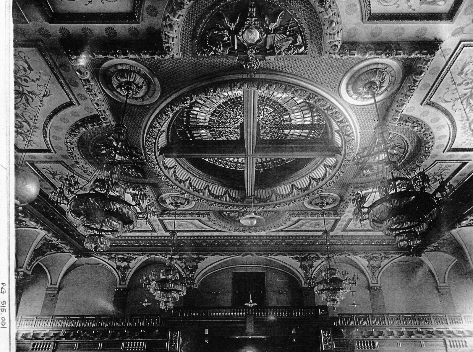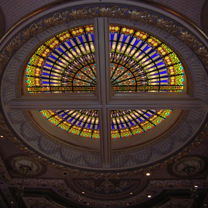 The Illinois State Capitol was constructed from 1868 to 1888 to the design of architects J. C. Cochrane, George Garnsey, and Alfred Piquenard. The primary interior spaces include a variety of elaborate decorative elements, including multiple types of marble, stenciled and gilded plaster, and leaded art glass.