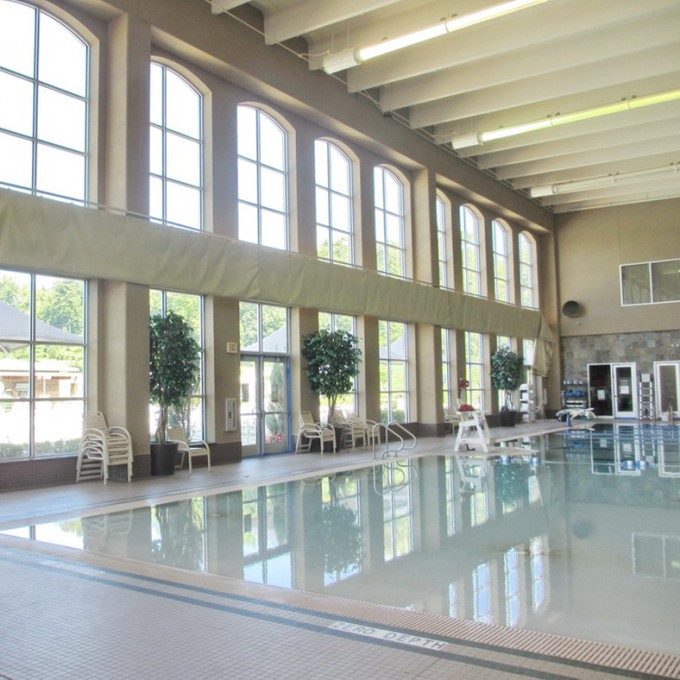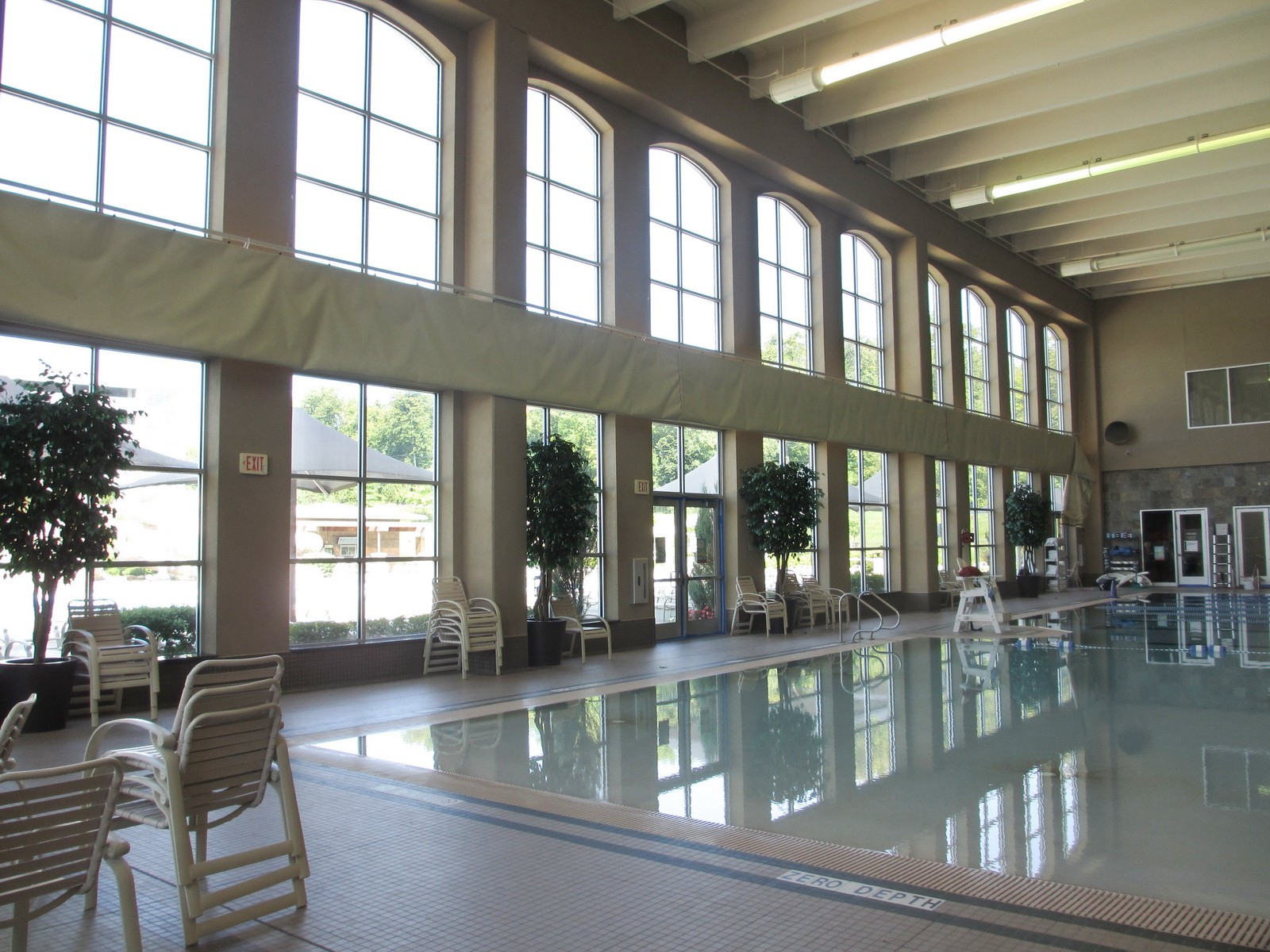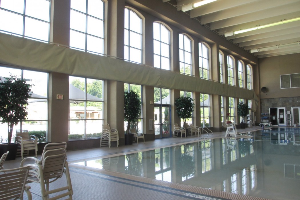A year after the building was completed, the original TPO roofing system over the indoor pool area and several interior spaces to the north of the pool were replaced due to moisture-related problems. A few years later, the new fully adhered roofing membrane above portions of the indoor pool and adjacent spaces became un-adhered from the underlying insulation board, and water stains became evident in the pool area. WJE was retained to investigate the causes of moisture-related issues and debonding of the single-ply roofing membrane.