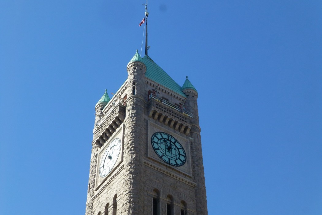 WJE was retained by the Municipal Building Commission to perform a structural and material evaluation of the historic ferrous metal elements and adjacent masonry at the north, south, east, and west faces of the clock tower atop Minneapolis City Hall. Following the evaluation, WJE was engaged as the structural engineer of record to design new cast aluminum structural elements, which provided support for translucent glass infill panels of the new clock faces.