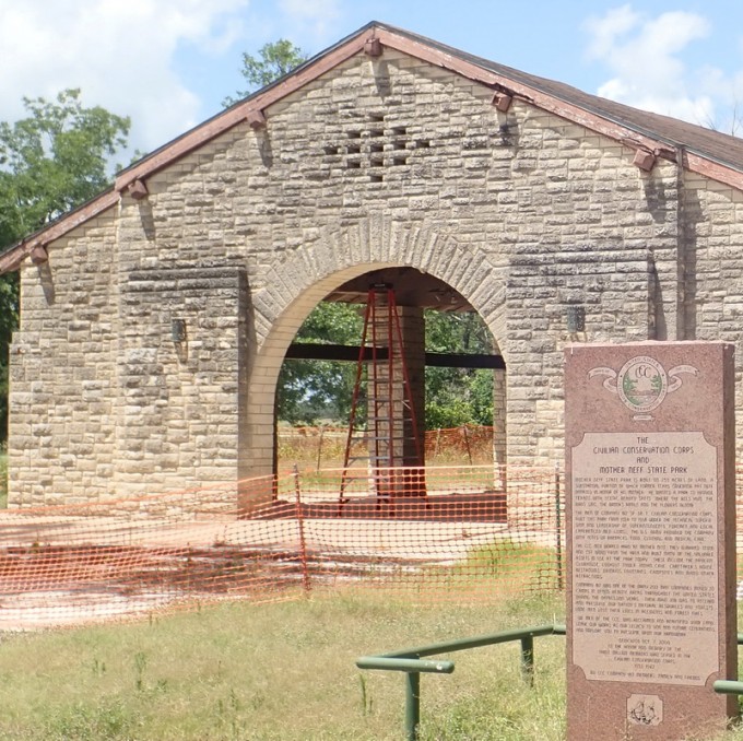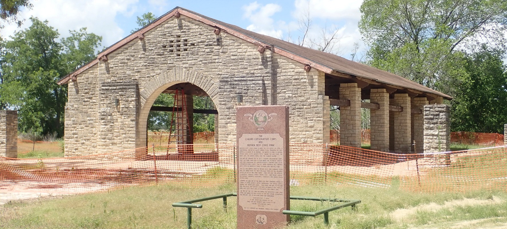 Originally called the Recreational Pavilion, the Rock Tabernacle structure at Mother Neff State Park was designed by the Texas State Parks Board in cooperation with the National Parks Service in Coryell County, Texas. The Civilian Conservation Corps constructed this open-air structure in 1937.