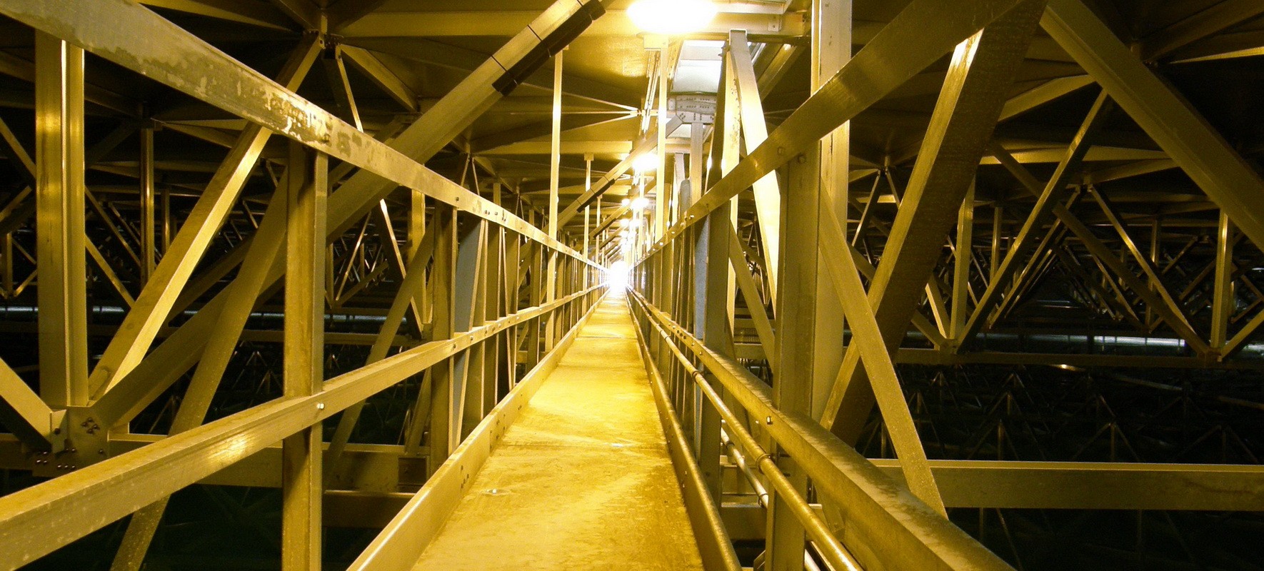 This large reservoir began to experience a moderate amount of leakage after the structure was covered with an aluminum-framed roof. WJE was asked to investigate the leakage and assess the best way to mitigate the leakage.