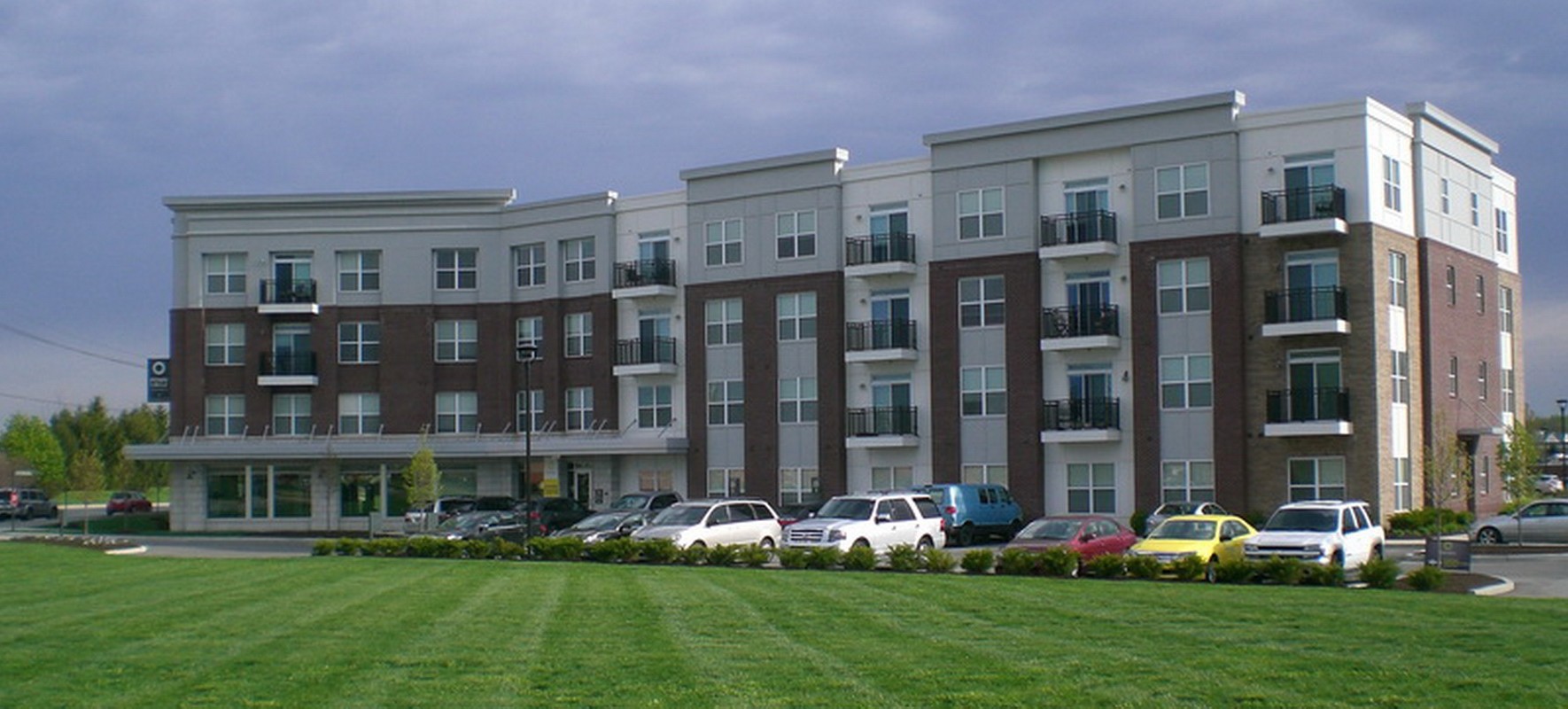 The Penn Circle Apartment complex consists of four three-story and one four-story residential apartment buildings completed in 2013. The buildings are wood-framed, and the facades of each building consist of a combination of brick masonry and manufactured panels.