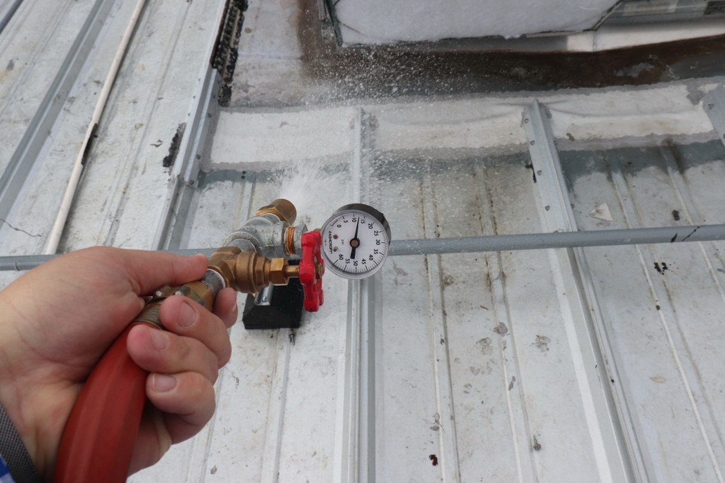 WJE performed water testing of suspect conditions to investigate the probable sources of water infiltration. Water testing was performed using systematic procedures to isolate the sources of leakage. Based on the observed conditions and water testing results, WJE determined that the likely sources of water infiltration were related to seals between the roofing panel laps and standing seams.