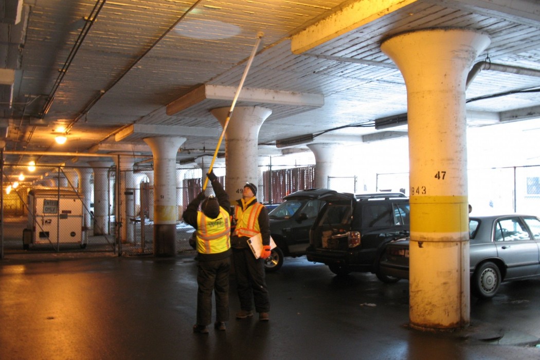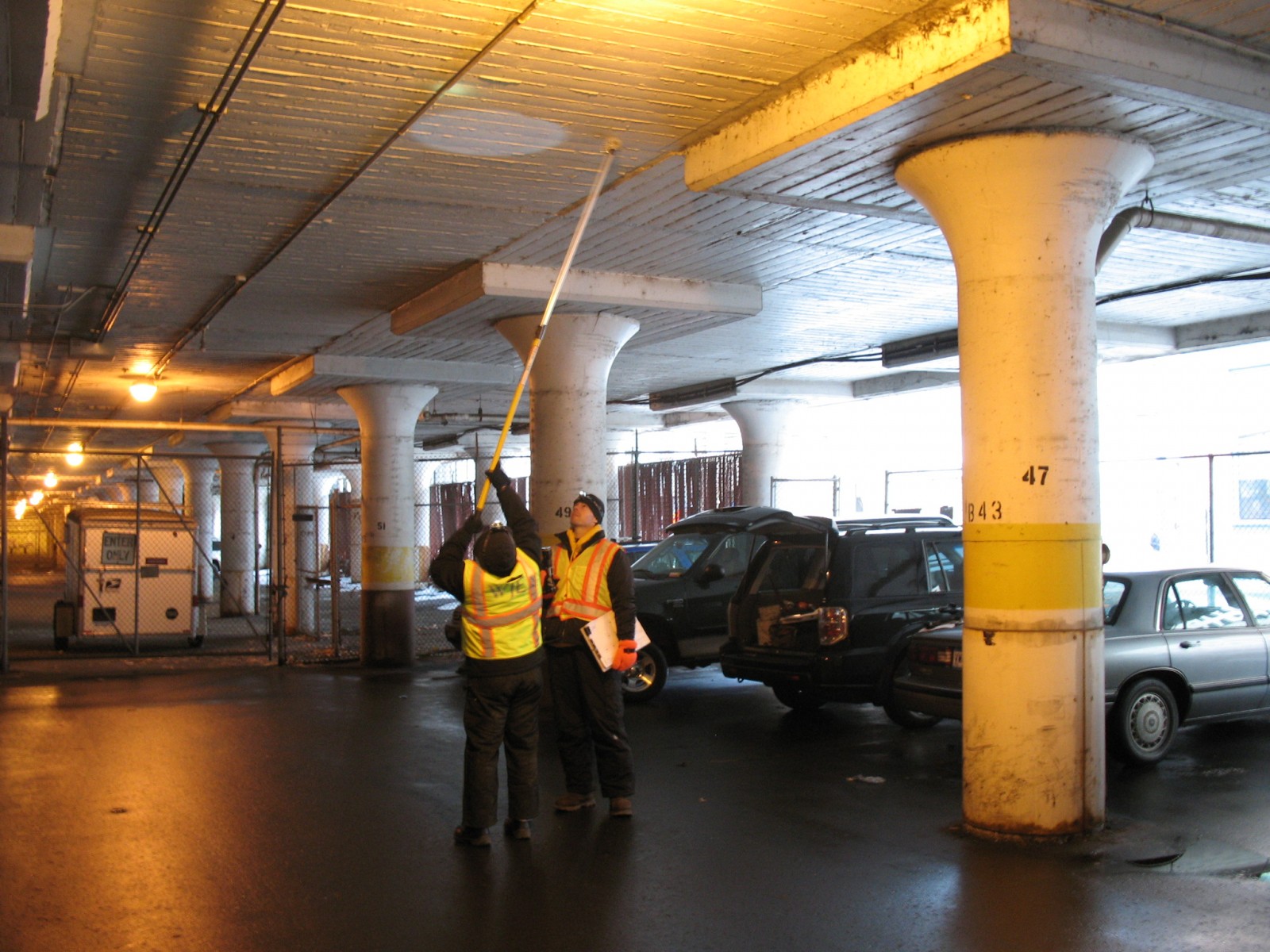 The historic Union Depot railroad terminal was constructed from 1917 to 1926 along the Mississippi River in downtown St. Paul, Minnesota. The sprawling 250,000-square-foot elevated concrete track deck includes approximately six hundred 21-square-foot bays, supported by approximately six hundred concrete columns and nine thousand timber piles.