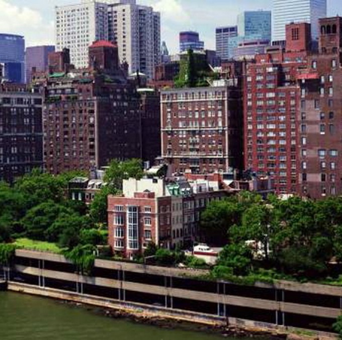 FDR Drive is a two-level below-ground expressway alongside the East River in Manhattan. FDR Drive is covered by a 27-inch-thick concrete slab "green" roof between Fifty-sixth and Sixty-third Streets. It supports public parks, landscaped grounds, and residential structures. The Whitehead residence is located in this area.